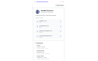 Recruiter Accelerator เป็นส่วนขยาย Chrome ที่มีประสิทธิภาพซึ่งออกแบบมาสำหรับมืออาชีพในด้านการสรรหา การขาย และการพัฒนาธุรกิจ เครื่องมือนี้ฟรีช่วยปรับปรุงกระบวนการสรรหาด้วยการให้การเข้าถึงข้อมูลติดต่อจากโปรไฟล์ LinkedIn ทันที ด้วยการคลิกเพียงครั้งเดียวที่ตัวเลือก 'Reveal Contact' ผู้ใช้สามารถดูที่อยู่อีเมลส่วนตัวและที่ทำงานที่มีอยู่ได้อย่างรวดเร็วโดยไม่ต้องออกจาก LinkedIn ซึ่งช่วยเร่งการเข้าถึงผู้สมัครได้อย่างมาก